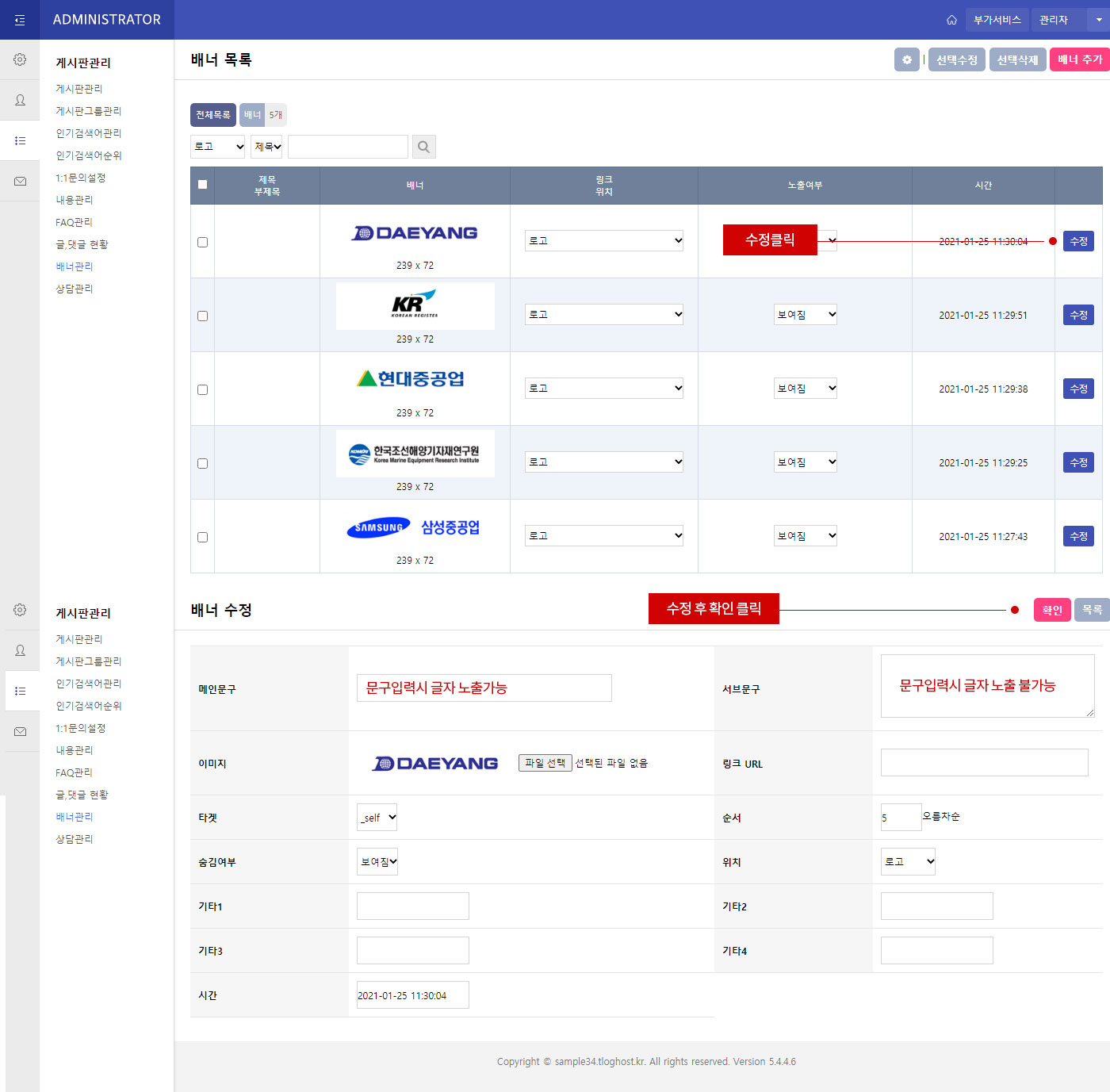 메뉴설정 상단 서브문구를 입력해주세요.